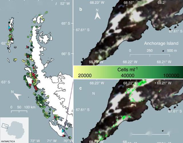 当然此次绿雪藻看起来可能会更让人舒服一些,毕竟满眼绿色在南极这种地方估计只能在温室大棚才能看到,由英国剑桥大学和英国南极调查局的研究人员领导的一个团队利用卫星数据和实地观测,这些绿雪藻在南极生长面积不小!