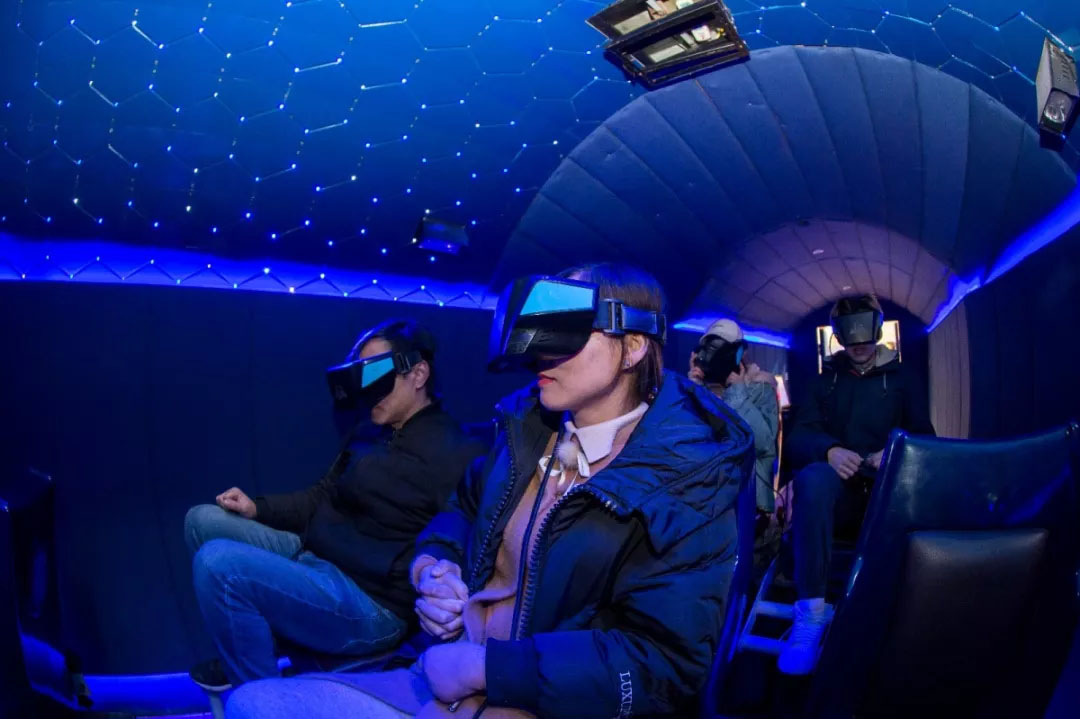 备受好评的神舟VR体验舱亮相展馆内,乘上体验舱的观众可以通过VR技术,以航天员们的视角游览空间站核心舱。同类项目还有“建设我的太空基地”,透过VR眼镜,我们可以游览小朋友们想象中的太空基地。两大影院,3D影院和球幕影院分别可容纳30位观众同时观影体验太空的乐趣,观看的还有很多互动小游戏,寓教于乐,遥测小火箭、航天员找不同、太空清道夫等,供小朋友们学习娱乐。
