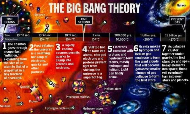根据天文学家对已经观测到的宇宙膨胀以及微博背景辐射,还有原初元素的丰度推测,宇宙起源于一次大爆炸,大约发生在138亿年前,早期宇宙只诞生了氢元素以及少量氦元素还有微量锂元素,此后宇宙中所有元素都是恒星的不同演化阶段所产生。