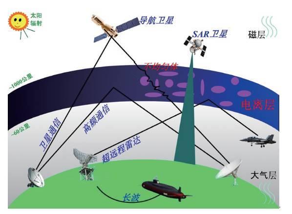 而且必须要指出的是电离层听上去就像一个包裹的毯子,也分成D、E、ES、F层,但真正的电离层却不是规则的层组成,而是由块状的、云一般的、不规则的电离的团或者层组成。并且电离层受到太阳活动和季节变化影响非常大。