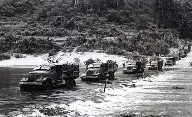 胡志明小道上的解放CA30A越野卡车涉水前进