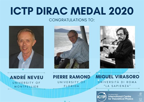 近日,国际理论物理中心(ICTP)公布了2020年狄拉克奖得主。3位弦论物理学家——法国蒙彼利埃大学的安德烈·内沃(André Neveu),意大利佛罗里达大学的皮埃尔·拉蒙(Pierre Ramond)以及意大利罗马第一大学的米格尔·维拉宿(Miguel Virasoro)——因在创建、系统阐述弦论中的开创性贡献,以及将新的玻色和费米对称性引入物理学而荣获本年度的奖项。狄拉克奖被誉为理论和数学物理界的最高荣誉,该奖项不授予诺贝尔奖、菲尔茨奖与沃尔夫奖得主,但狄拉克奖章获得者中,有多人在随后摘得了上述奖项。
