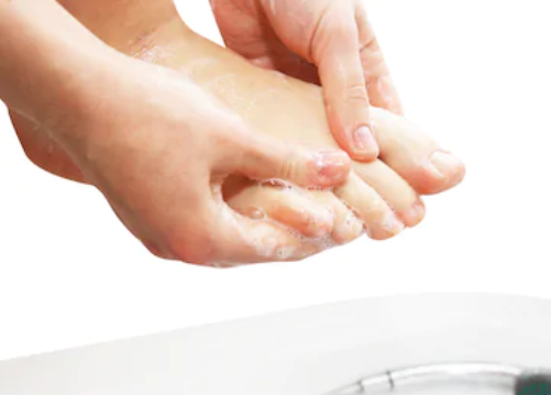 冲洗也有些讲究。记住!冲脚用凉水即可,不要直接用热水或盐水泡脚,热水或盐水可能加速感染。