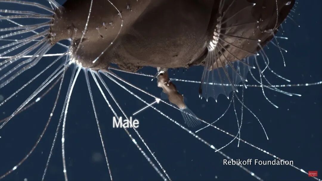 交配期间,雌鱼会给雄鱼输送养分与激素,刺激雄鱼在自己在排卵的时候同时排出精子,从而完成交配。简单来说,雄性在这里就是一个专门负责生产精子的工具,而有的雌性鮟鱇甚至还可以同时拥有很多个工具鱼。