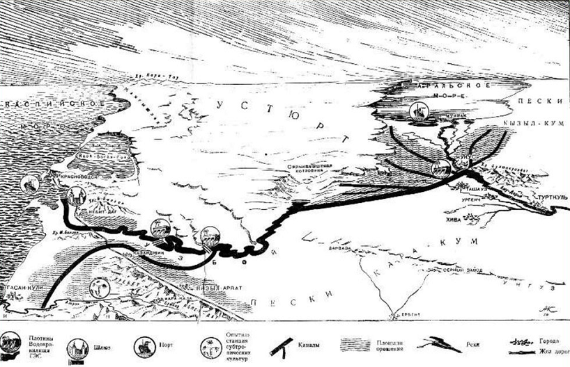 战争结束后,修建中亚运河的计划再次提上议程,并完成了勘探和技术设计工作。不过这时候的斯大林,所想的并不是一条从阿姆河引水到卡拉库姆沙漠的运河,而是一条从阿姆河引水到里海的大运河(土库曼大运河)。
