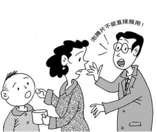 泡腾片:遇水可产生二氧化碳气体而成泡腾状;使用时应当将泡腾片置于水中,充分溶解后再服用。