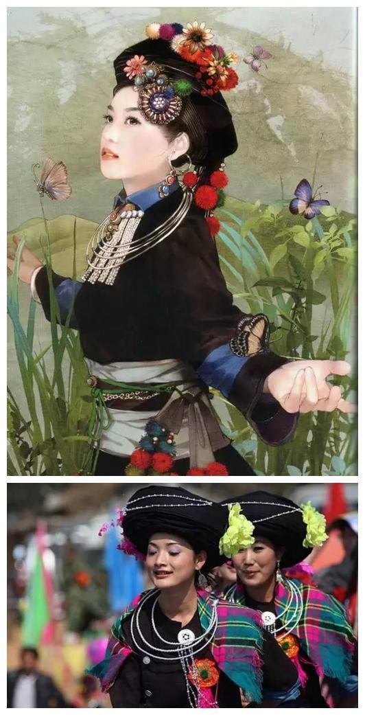 拉祜族主要分布在云南省南部。拉祜族最喜爱黑色,以黑为美,以黑为主色。拉祜族妇女服装具有青藏高原妇女服装的特点,穿的是黑布长衫,长至膝下,两侧开衩且开衩较高,立领右襟,缀有银泡装饰,喜欢用红色或白色花边镶缀在袖口、襟边,显得光艳美丽。