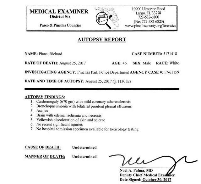 Richard Piana的尸检报告