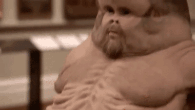 他的头部巨大,但脸部凹陷,乍一看如同有三张脸,但五官却聚在一起。身材略微肥胖臃肿,腿部却呈锥形,造型诡异。总的来说,外表就像是一滩油腻的肥肉。
