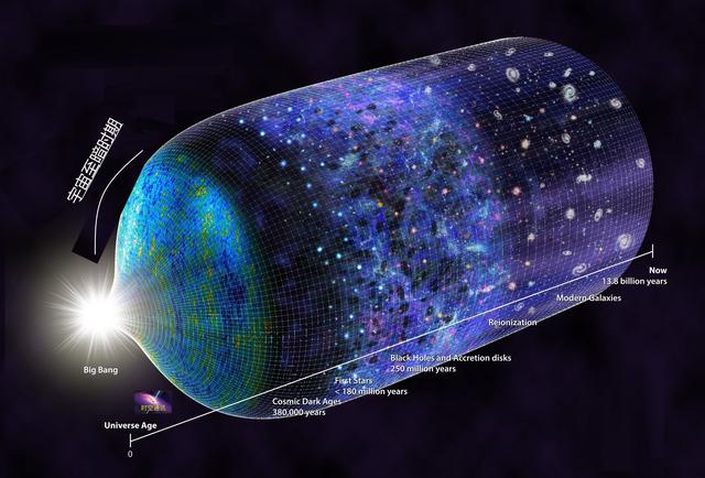 大爆炸初始阶段,由于极端高温高压,宇宙处于不透明状态,电磁波也无法脱耦。啥叫脱耦?文绉绉的说就是“将抽象同现实之间的强关联关系变为弱关联关系”,通俗点说就是电磁波还无法从宇宙的高温高压中形成并溢出来,而人类是依靠电磁波观测世界的,既然那个时候宇宙还没有电磁波,对于人类来说就是黑暗的,看不到的。