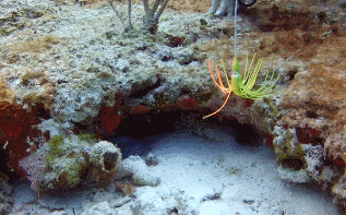 所以只要你能找到他,然后就在洞口准备好拍摄吧,另一个潜伴可以顺利的把它都出来。基本上和用逗猫棍的感觉差不多。