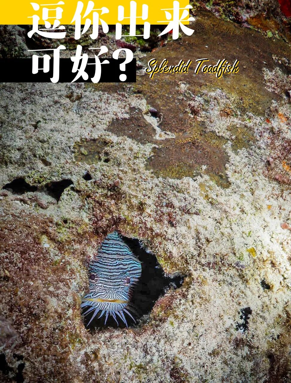 这种漂亮的蟾鱼也有一个漂亮的名字:Splendid toadfish,中文一般称为“锦绣蟾鱼”,或“锦蟾鱼”,如果单看它可能还没有五彩斑斓的苏眉鱼那么灿烂,但对于蟾鱼来说,已经足够锦绣和华丽了。