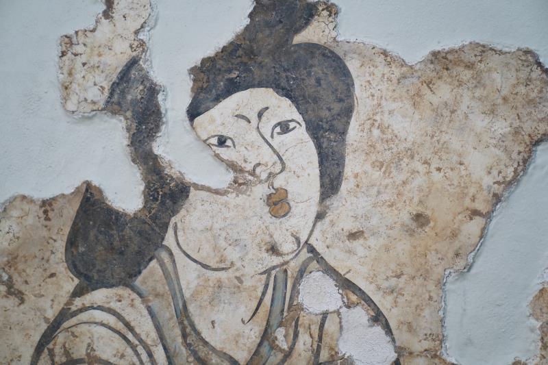 新修复的壁画位于墓葬甬道的东西两侧,由文官形象和仕女形象组成。专家介绍,由于墓葬遭到盗扰和破坏,墓中壁画有严重的错位和断裂情况,修复难度比较大。为了加强修复后壁画的稳定性,除了用传统材料对壁画背面进行加固,他们还在修复过程中研发和试验了专门针对壁画白灰层加固的新型材料。