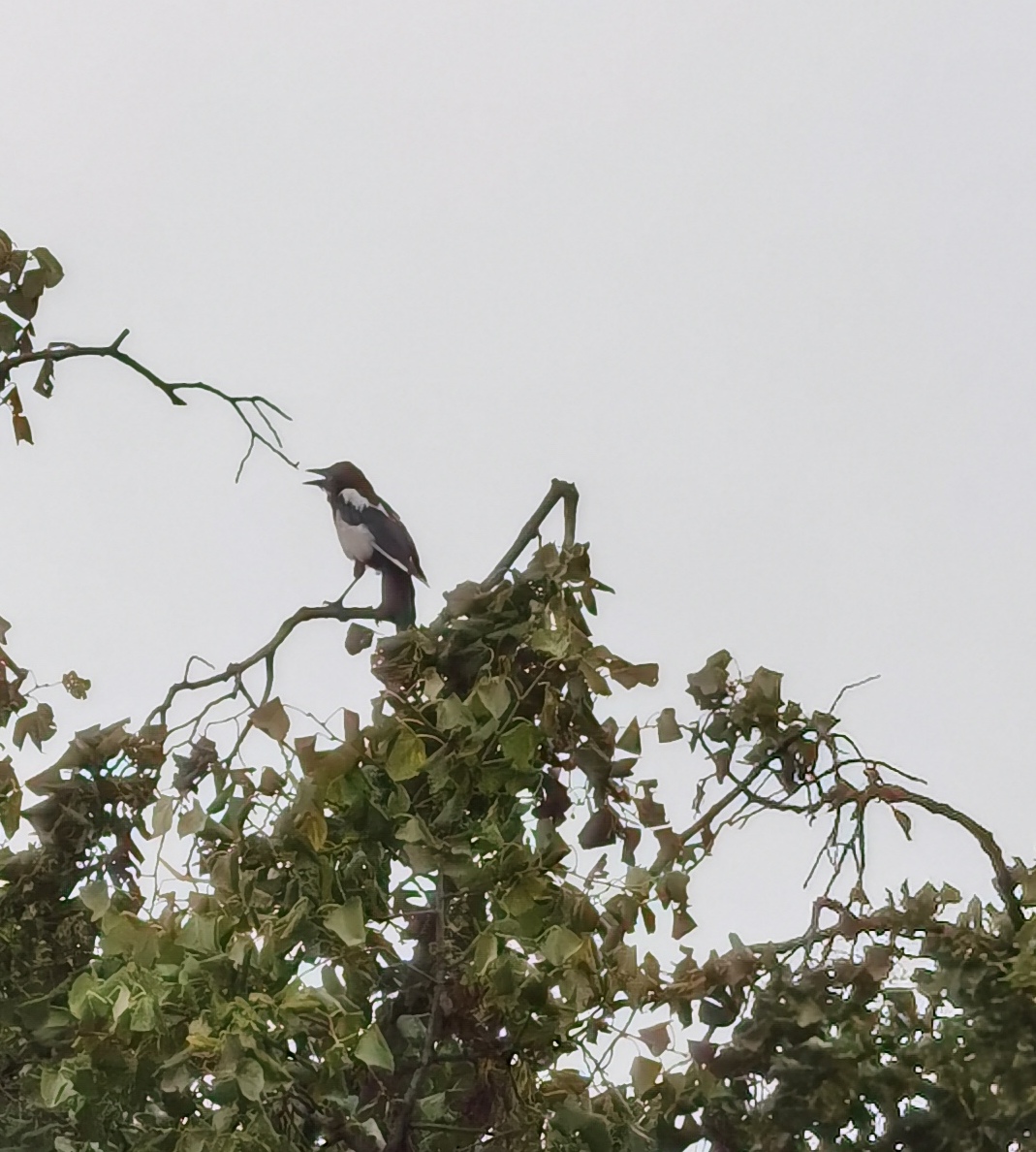 看那秋鸟儿,栖枝探望,秋暝吟弹,独秋见珠露,清泉石上流,生机焕枝头,康健养地球!