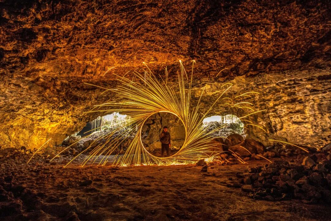 喷出地表的岩浆在地面肆意流淌,表层最先冷却凝固,而在内部继续炽热的潜动。当岩浆流尽,终成洞穴形态的熔岩隧道。