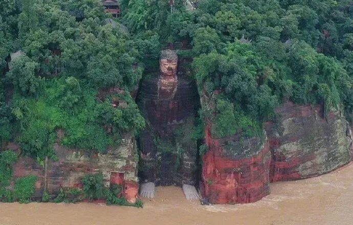 ●8月18日5时,四川省防汛抗旱指挥部启动Ⅰ级防汛应急响应,这在该省历史上尚属首次。受暴雨和上游洪水影响,乐山岷江、青衣江、大渡河水位迅速上涨,乐山大佛佛脚平台再次进水,且洪水已漫过大佛脚趾头。这是1949年以来,乐山大佛首次被洪水淹至脚趾头。(来源:中新网)