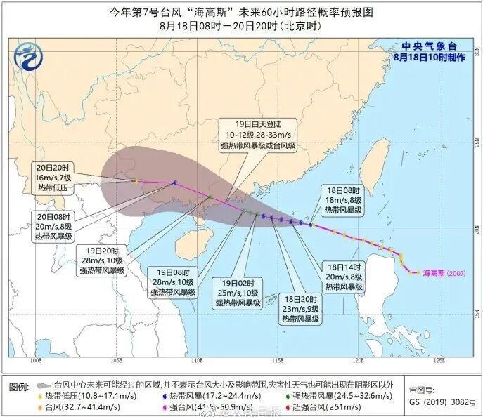 ●南海热带低压已于8月18日上午加强为今年的第7号台风“海高斯”,目前“海高斯”正携风带雨赶赴华南,预计将于19日白天在广东珠海到吴川一带沿海登陆。中国气象局已启动重大气象灾害(台风)三级应急响应。(来源:央视新闻)