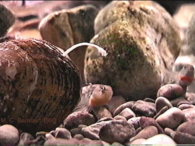 许多河蚌直接在水中喷射后代——钩介蚴。