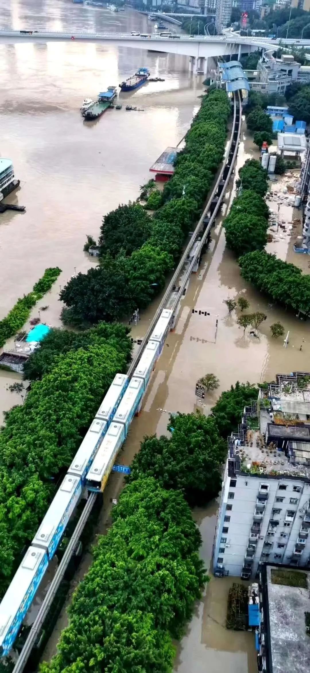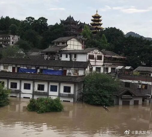 据悉,目前重庆市区一些低洼地段渍水严重,多处临江道路、桥梁、码头、滨水公园广场被淹,著名的洪崖洞、磁器口等网红景点都遭水淹。