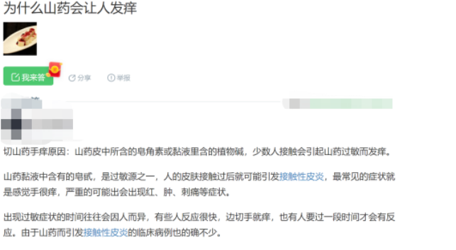 很多人都说山药粘液致痒是由于其中的皂苷或皂角素造成的,但是目前并没有文献报道山药致痒的罪魁祸首是以上物质。