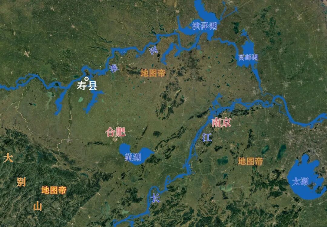 类似的故事一再上演。五代十国时,南唐控制着淮河以南,寿州(安徽省淮南市寿县)和合肥依次成为南京的门户重镇。咱们看淮南(淮河南岸至长江北岸的地区)地图,合肥正好处在中间位置,不北不南、不东不西,是南唐在淮南的战略中枢。