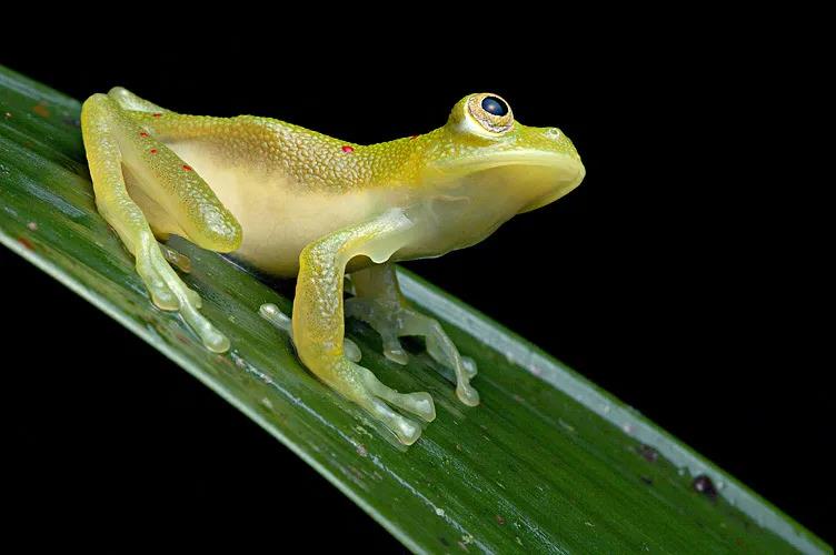 不过,这种伪装在陆地上却十分罕见。一方面,相比于水体环境,生物组织与陆地空气的差异实在太大,即便透明无色,它们也会使光线扭曲,让伪装效果打折。另一方面,由于没有水体吸收光线,生物一旦放弃了身体中的色素,身体就要从内到外承受紫外线的袭击。 玻璃蛙如何克服这些劣势呢?最近在《美国国家科学院院刊》(PNAS)上中,研究者提出了一种假说——他们认为,这或许要归功于玻璃蛙的“不完美透明”。
