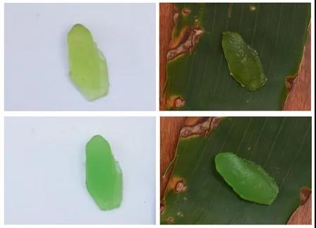 另一方面,研究者发现,玻璃蛙只能算是“半透明”——因为不论在什么背景上,它们看起来都是黄绿色的。 为了测量玻璃蛙的透明程度,他们对比了玻璃蛙处在白色背景和树叶背景上的照片,并且通过计算机,分析出了玻璃蛙在捕食者眼中的样子。结果显示,在不同背景上,玻璃蛙的色彩差异十分有限,都是黄绿色的。但在颜色较深的树叶背景上,它们看起来也颜色比较深;而在白纸背景上,它们看起来就比较白。