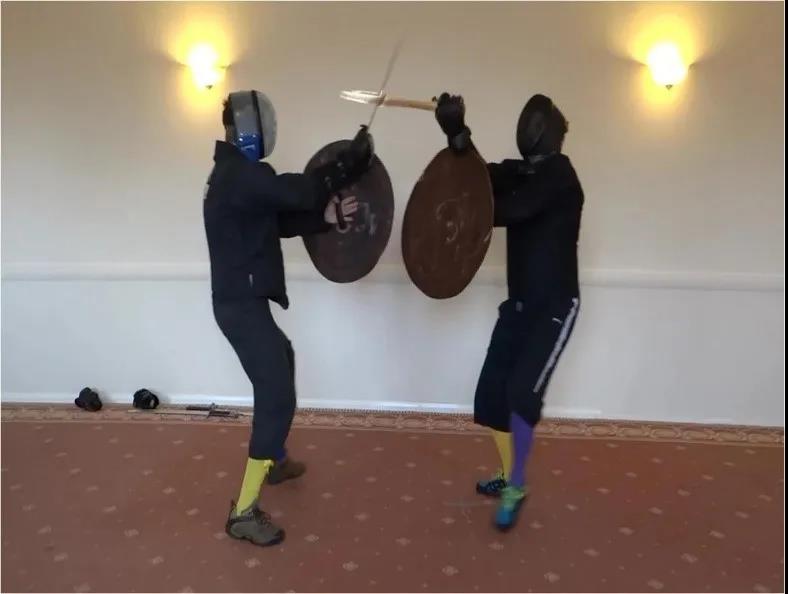 他们穿戴着现代击剑护具,但手中的兵器却十分复古——一把古法手工锻造的青铜短剑,以及工艺同样来自几千年前的圆形盾牌。