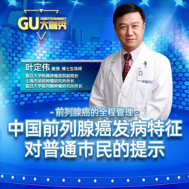 GU大咖秀第一季第一集将由复旦大学附属肿瘤医院副院长、上海市泌尿肿瘤研究所所长、复旦大学前列腺肿瘤研究所所长叶定伟教授,以“中国前列腺癌发病特征对普通市民的提示”为主题,对前列腺癌的病因和危害、我国前列腺癌发病特征与其发病率增高的原因、前列腺癌的规范化诊疗等问题进行权威讲解,让普通市民对前列腺癌有更清楚的认知。