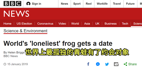 事情是这样的。这只蛙名叫罗密欧,他的单身情况要比你想象的严重,是那种全世界就剩下自己的单身,找不到对象种族就会灭亡。