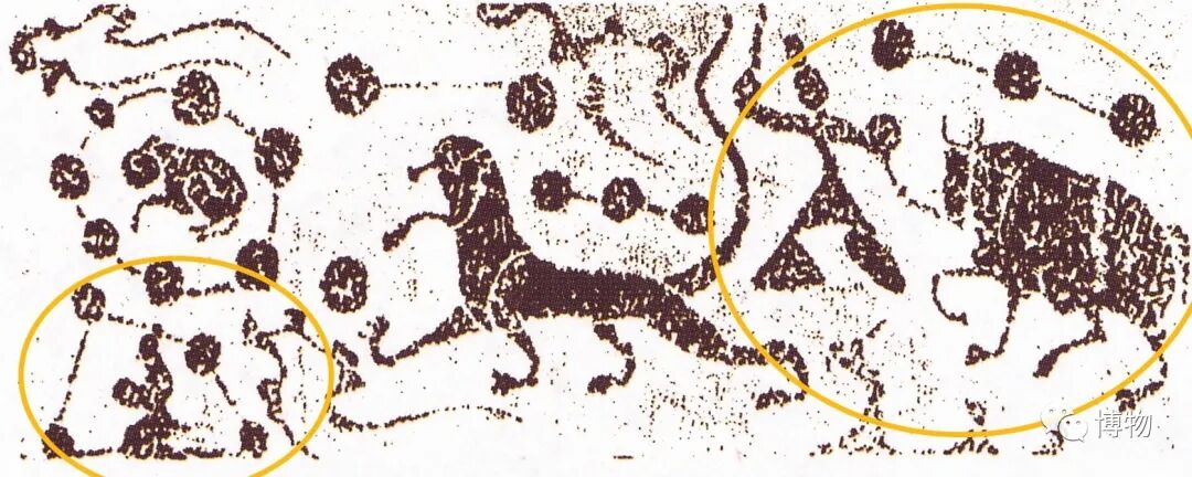 河南南阳出土的汉代画像石拓片,描绘了牵牛、织女的拟人形象:牵牛与两侧的小星连成一线,被想象为一手牵牛、一手扬鞭的男子形象。织女及其周围的小星,则被想象为端坐纺织的女子。