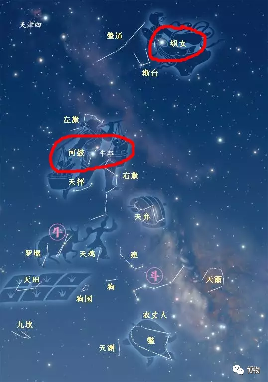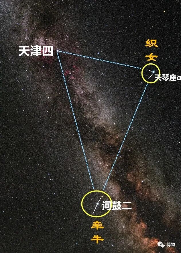 之前讲星宿的时候,给大家详细科普过织女星和牛郎星(也叫河鼓。河鼓有三颗星,牛郎星是其中最亮的一),点这里可以复习。