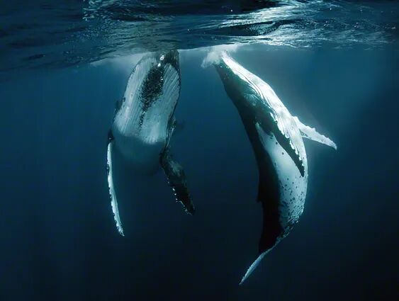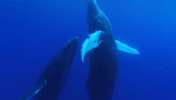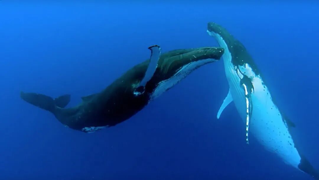 在还没有宝宝的时候,一对座头鲸夫妇经常会彼此跳舞,玩耍,也会相互两鳍触摸,用身体摩擦,发出各种“歌声”,可谓爱意浓浓。