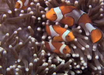 你经常能看到一大群小丑鱼好像全在同一个海葵里。这时候,他们之间就存在着严密的等级。最大只的那一条,自然是鱼群的首领,那一定是雌鱼。而第二大的那条,是鱼群的副首领,就是雄鱼。而剩下的芸芸众生则不分等级,甚至无性别。也可以说,由于被首领和副首领压制,它们无法发展出性别。