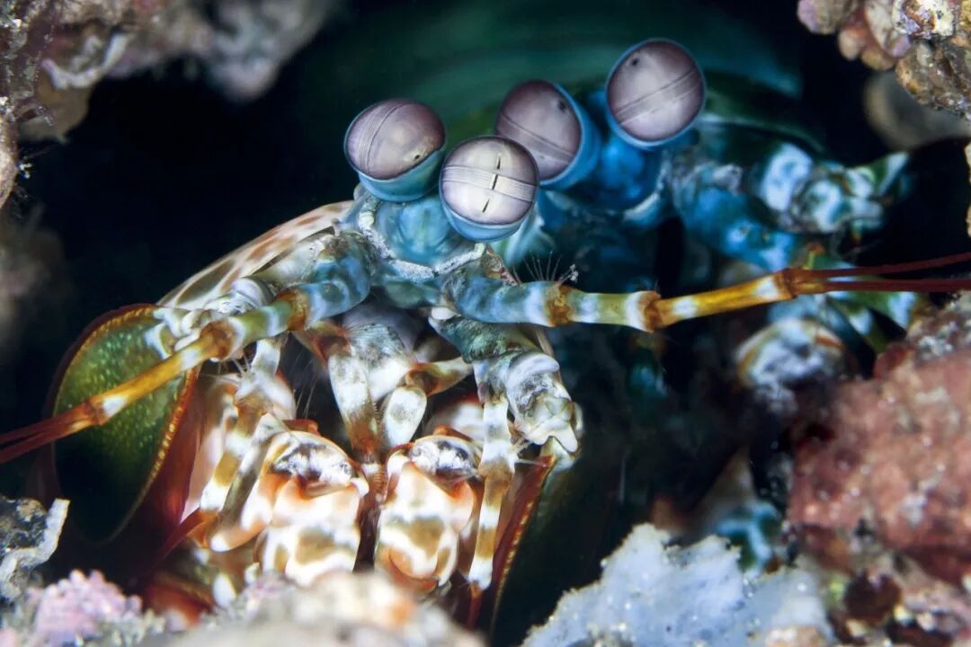 螳螂虾,通俗的说就是我们常见皮皮虾,不过这里还是用比较漂亮的孔雀螳螂虾来举例吧,颜值为王。