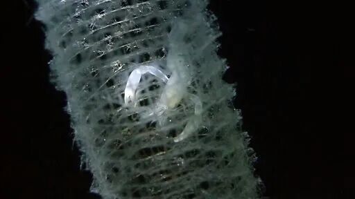 俪虾们进入的这个“洞穴”就是美丽的“维纳斯花篮”( venus's flower basket),这是的海绵动物,这种海绵像网兜,四周布满了小孔,因其骨架由二氧化硅构成,而二氧化硅又是制作玻璃的原料,故又叫做玻璃海绵,这也是海绵中的艺术品。