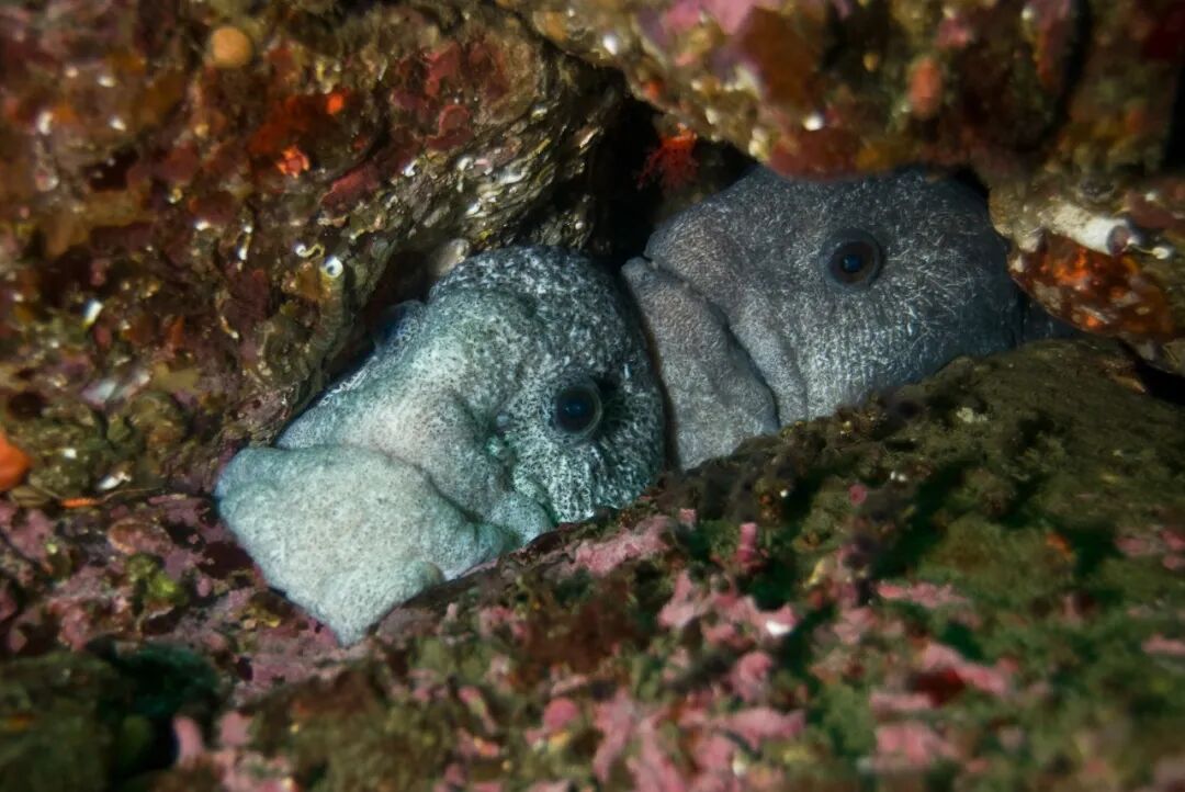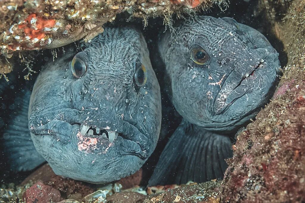 狼鳗本身是一种攻击力很强的海洋动物,它惊人的咬合力能够毫不费力地咬碎海胆或螃蟹。不过就是在这种凶神恶煞的外表下,狼鳗却是实行“一夫一妻”制的繁衍方式,终生只有一位伴侣。