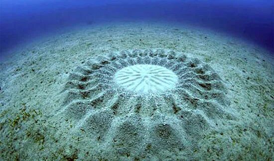 这种图案是体型的几十倍大,雄河豚需要连续一周24小时不停歇的工作,才能完成这幅精美的艺术品,它们甚至还会捡取周围的小贝壳来给图案做装饰。