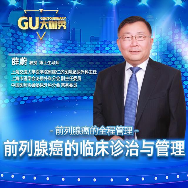 GU大咖秀第一季第四集主讲人为上海交通大学医学院附属仁济医院泌尿外科主任、上海市医学会泌尿外科分会副主任委员、中国医师协会泌尿外科分会常务委员薛蔚教授,主题为“前列腺癌的临床诊治与管理”。