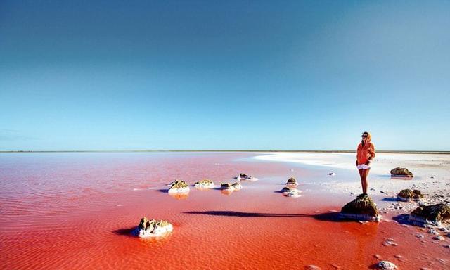 杜氏盐藻就是一种大量繁殖后能让湖水变红的藻类,它们生活在咸水湖中,正常条件下并不会改变湖水的颜色,但光照增加或者盐湖浓度增加,富营氧化时就会让湖水变成一片血红,看上去有些异星的风采,可能会让你有一种在火星的感觉!