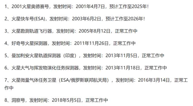 当前在火星工作的火星探测器有8台,包括地面工作和轨道环绕,这是除了地球和月球以外,最被照顾的的行星!