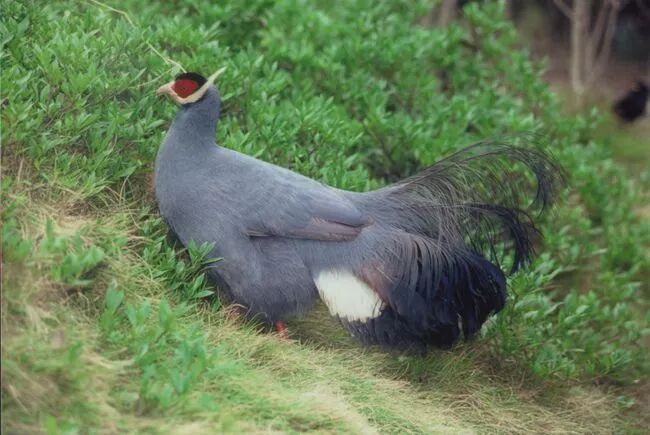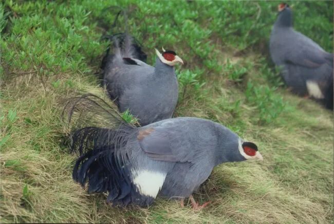 原来,它从前居然被列为白马鸡的一个亚种,可是它的羽毛并不是白色,而是更接近蓝马鸡的蓝灰色。