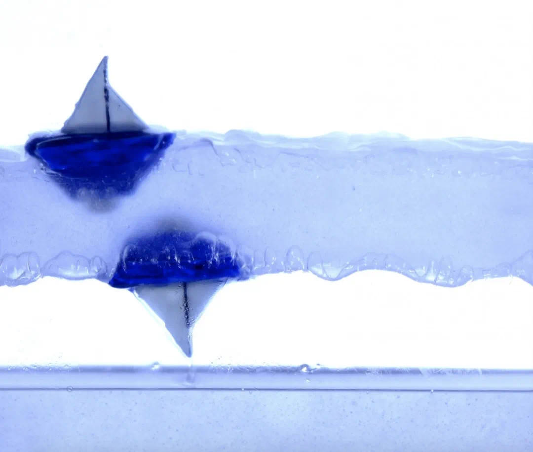 在重力的作用下,容器中的液体通常会落至容器底部。但一项发表于《自然》的研究发现,在特定情况下,垂直振动液体可以使其浮于某低密层(如空气层)之上,浮力在悬浮液体的下层会发生反转,出现了明显的反重力效应。研究人员向容器内注入液体(如硅油或甘油),接着垂直振动容器,将空气注入容器底部,直到液体开始悬浮。像模型船这样的物体便可在悬浮液体的下表面反向漂浮。此外,液体下部的空气气泡会下沉而不是上升。这些观察结果违反了阿基米德原理,挑战了此前对于液体-空气界面的直觉理解,或有助于进一步研究液体边界行为。