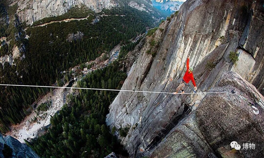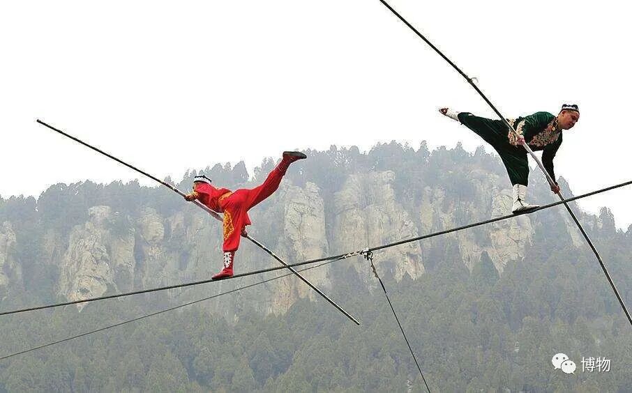 就是在山谷里或者海面上,一个人手持长棍,走在悬空的钢丝上。