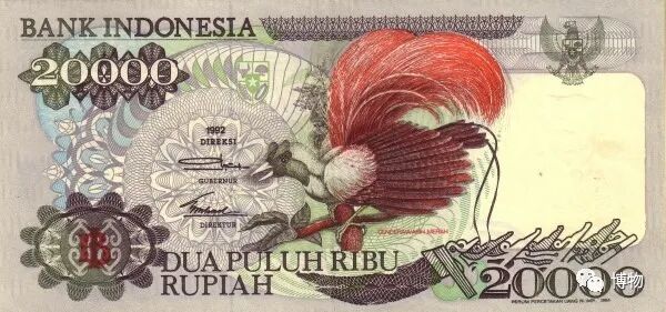 甚至在印尼的钱币上,我们都能看到红极乐鸟的身影。