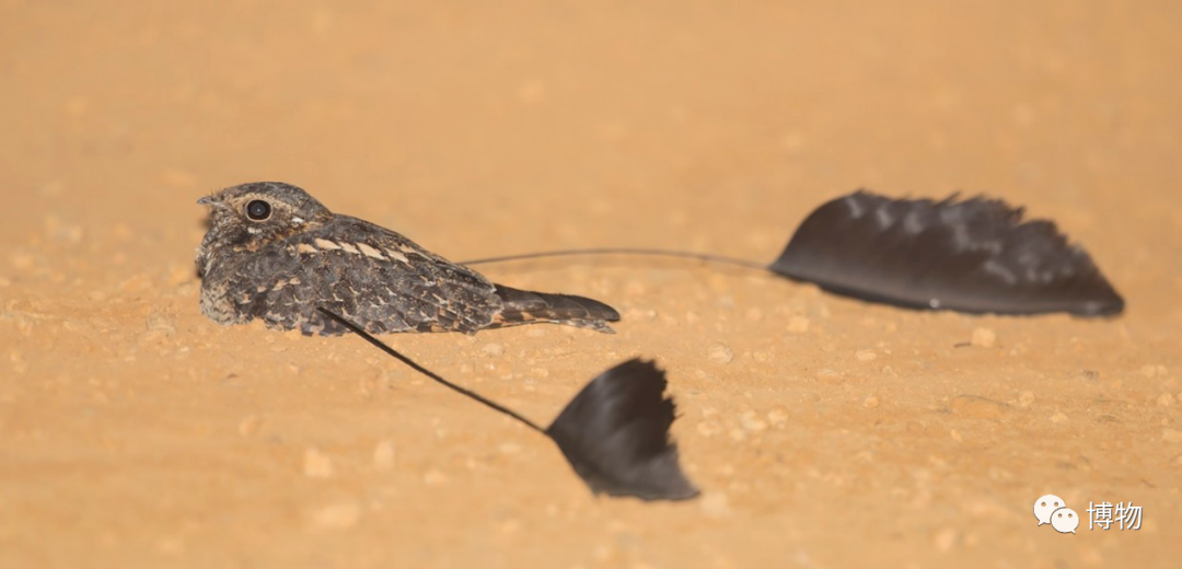 还有有一种叫旗翅夜鹰的鸟,主要分布于从塞内加尔到埃塞俄比亚的非洲干燥的稀树草原上。它们常常在日落时分像飞蛾一样安静而轻盈地飞翔。