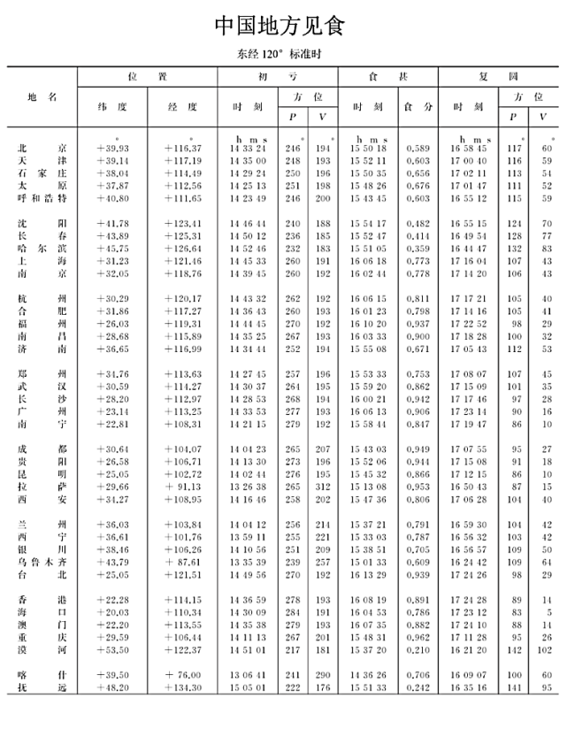全国主要城市日食观测预报(来源:中科院紫金山天文台)