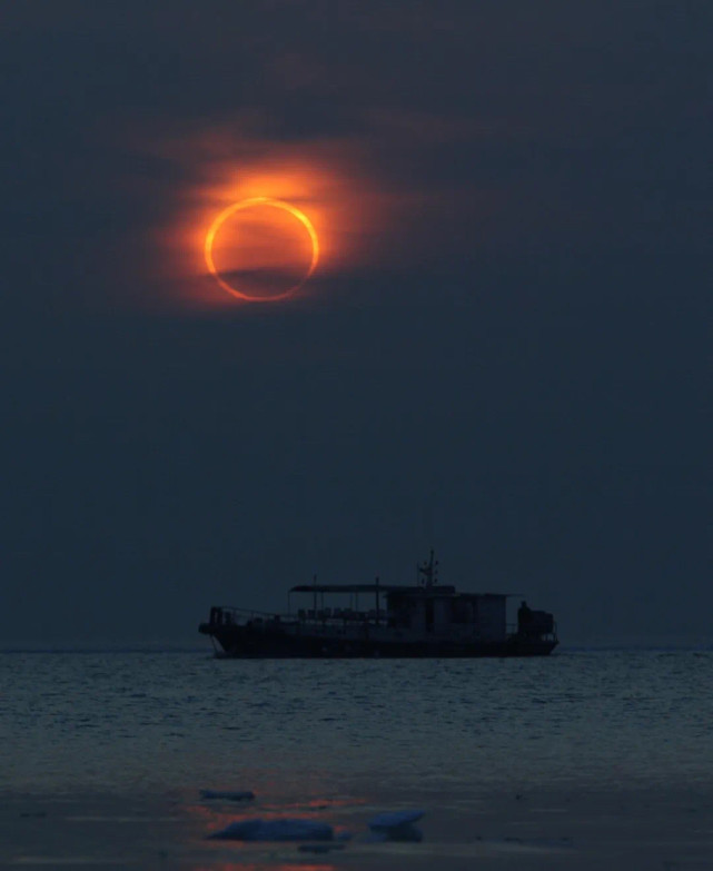 日环食发生时,因为月球在太阳和地球之间,但是距离地球较远,不能完全遮住太阳,此时太阳中间黑,边缘亮,形成光环。这次日环食最大特点是食分达到了0.997(西藏措勤县附近),环食阶段太阳视圆面被月球覆盖的面积达到 98.81%,非常接近全食,这样的日环食也被称为“金边日食”。根据计算,下次达到这么大的食分至少要等到 2032 年 5 月 9 日,而且观测地点将在南大西洋上。比起漂洋过海,这次我们坐在家门口欣赏天象奇观就显得容易许多了。