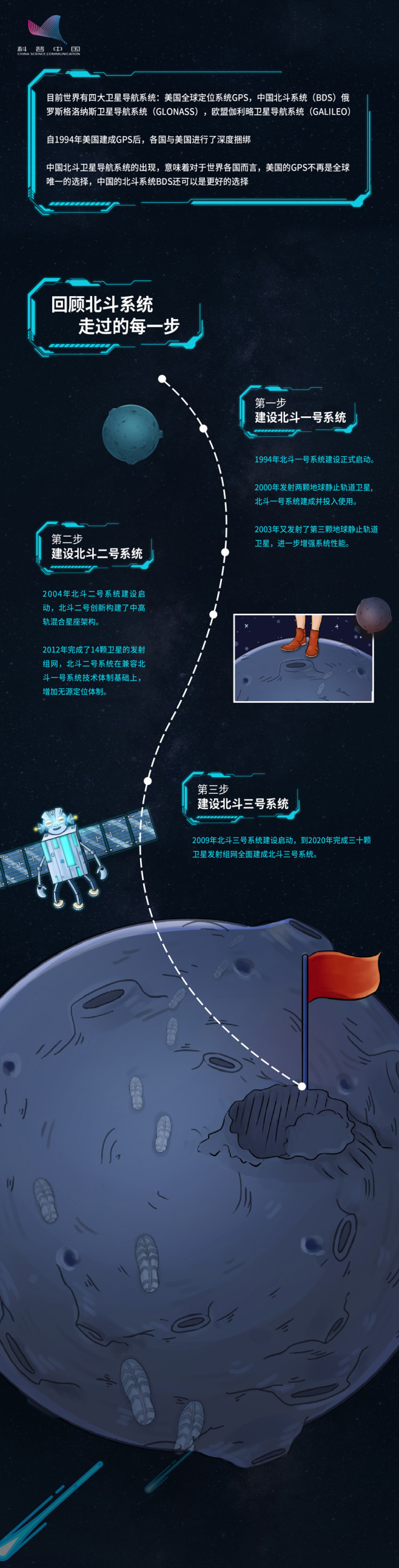 北斗导航系统是中国着眼于国家安全和经济社会发展需要,自主建设运行的全球卫星导航系统,是继美国GPS系统和俄罗斯GLONASS系统后第三个运行成熟的卫星导航系统。为全球用户提供全天候、全天时、高精度的定位、导航和授时服务的国家重要时空基础设施。