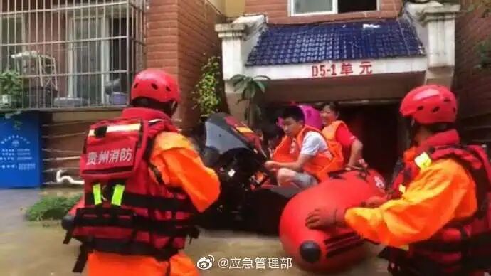 贵州贵定县一小区受暴雨袭击 消防4小时营救70多名被困群众